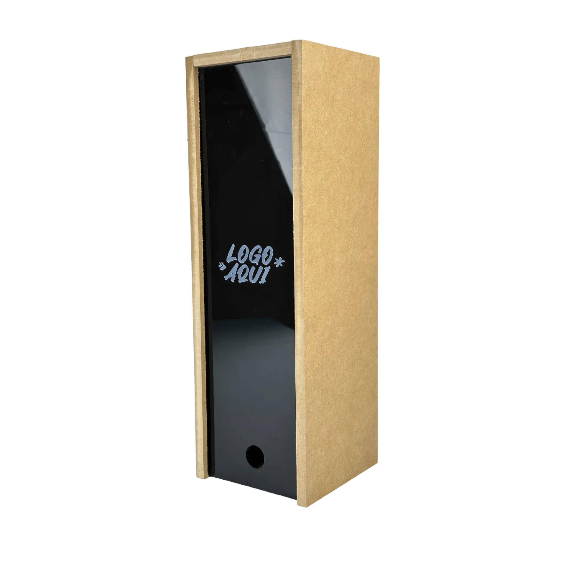 Caja de 35 x 10 x 10 cm (Medidas Internas) elaborada en Mdf de 9mm de espesor, con tapa deslizable de acrilico negro.