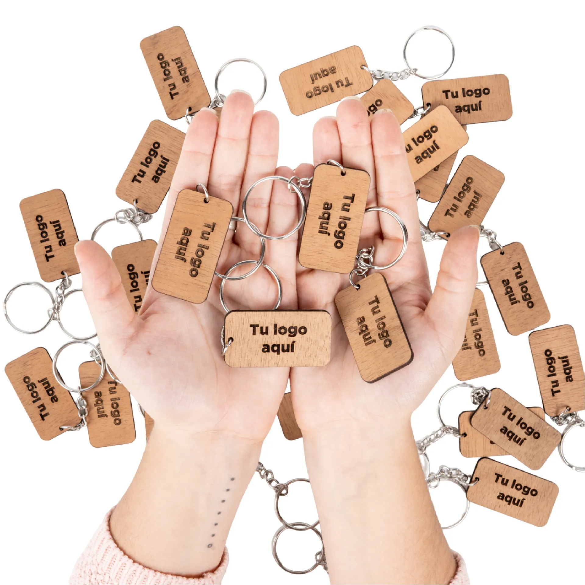 Llavero de 5 x 2,7 cm elaborado en madera terciada de 3mm de espesor. El llavero puede ser circular, rectangular o circular.