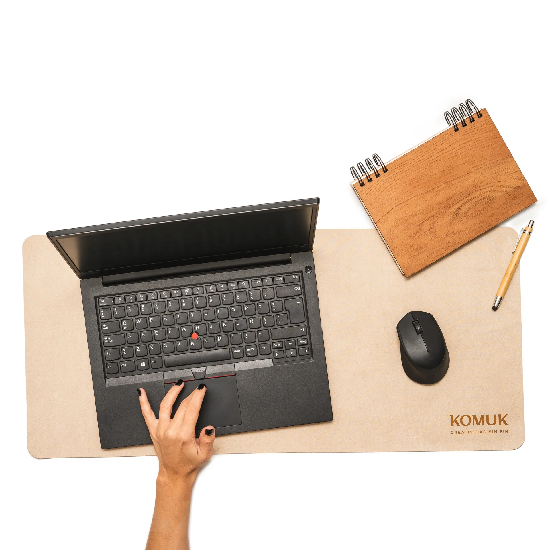 Deskpad de 69 x 33cm, elaborado en cuerina gamuzada de 1mm de espesor. Disponible en 3 colores (El producto NO es rigido, es un eco cuero). No posee antideslizante. Es ideal para proteger tu mesada y trabajar con tu mouse y teclado.