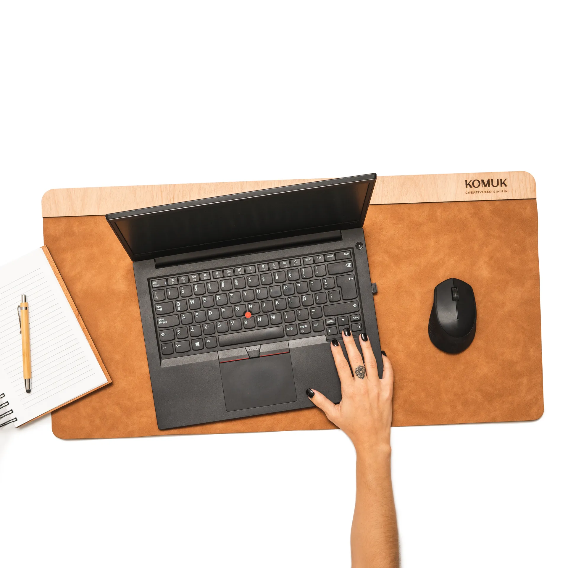 Deskpad de 69 x 33cm, elaborado en cuerina gamuzada de 1mm de espesor, con detalle con mdf enchapado de 3mm de espesor .Disponible en 3 colores (El producto NO es rigido, es un eco cuero). No posee antideslizante. Es ideal para proteger tu mesada y trabajar con tu mouse y teclado.