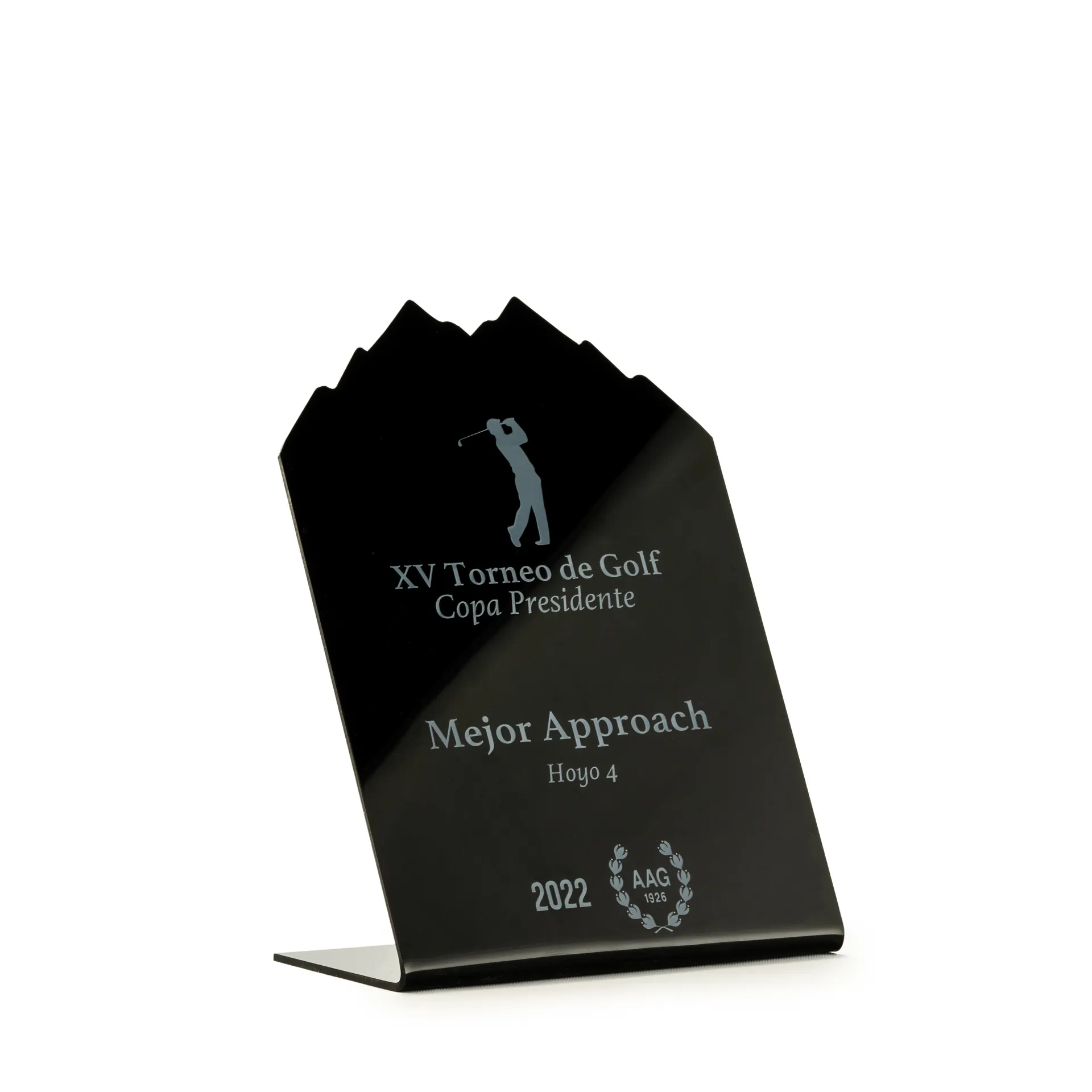 Distincion de 15x22 cm, elaborado en acrilico negro de 2mm de espesor.