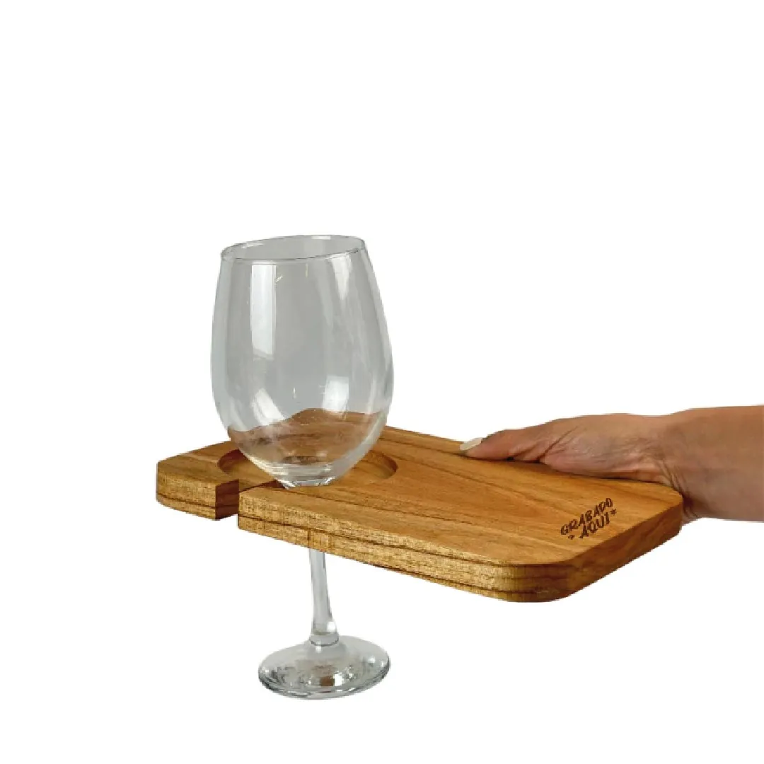 Tablita para copetin que permite sujetar copas. Realizada en madera paraiso multilaminada de 20mm de espesor. Medidas: 23x15 cm