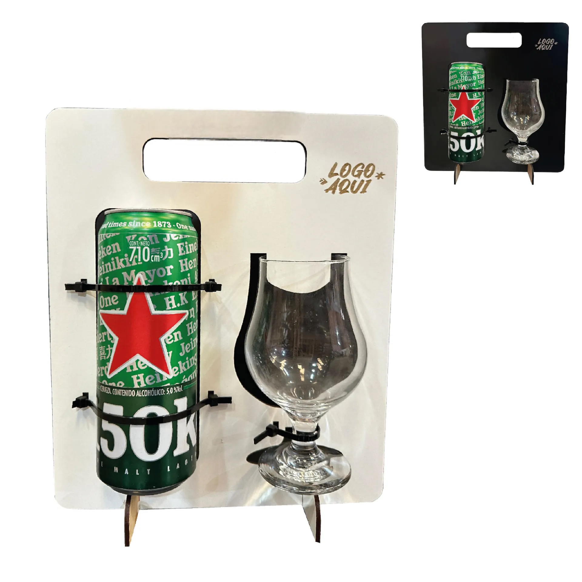Soporte para una copa dublin de 400ml y lata de 710ml . Realizada en fibroplus de 3 mm de espesor. Color: negro o blanco. Medidas: 32x26 cm. No incluye lata.