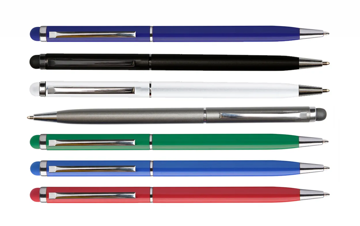Medio giro. Clip de metal y touch de color. Tinta negra, punta redonda, grosor 1.0MM