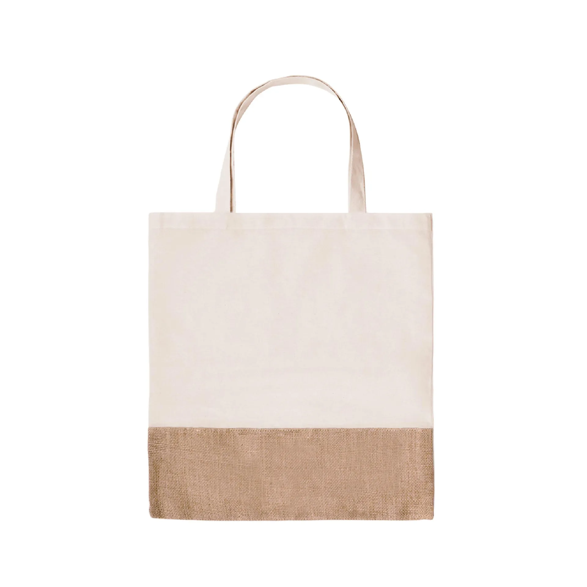 Bolsa ecológica reutilizable. De algodón 100% con franja en arpillera natural. Contiene asas de 60 cm de largo. Medidas: 35 x 40 cm.