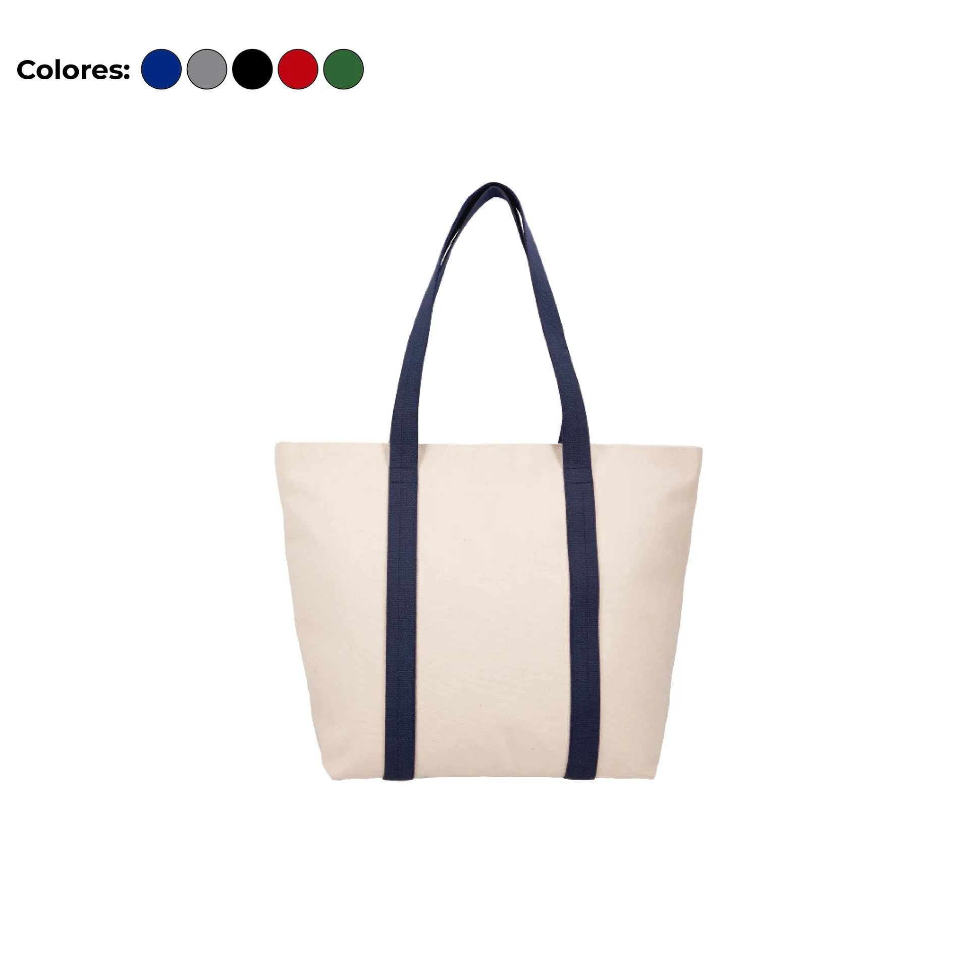 Bolso de lona de 100% algodón con forro de Lienzo Crudo. Cierre con broche Imán. Manijas de cinta de diferentes colores tejida 100% algodón de 30 mm. Medidas : 46 x 38 x 13 cm