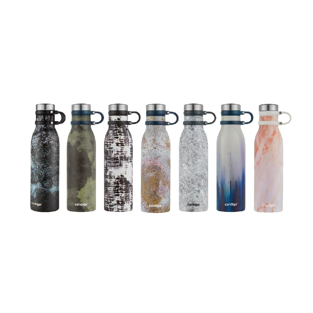 Cuerpo de Acero 304 de doble pared. Mantiene el frio por 24hs y calor hasta 10hs.• Boquilla removible ancha, ideal para limpieza y llenado de hielo • Correa flexible de silicona para mejor agarre,• Material: acero inoxidable 304 de doble pared insulado, con aislamiento de vacío • Naturalmente libre de BPA, acero inoxidable • Capacidad: 591ml