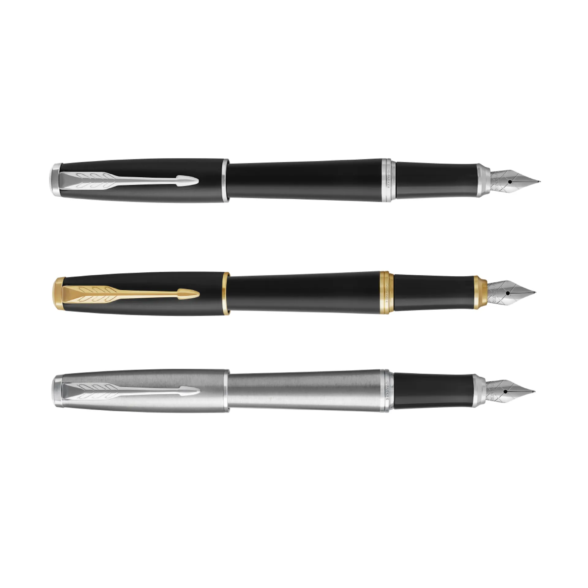 Con cuerpo de laca y acabado mate, agarre de resina de color brillante, plumín de acero resistente. Con detalles plateados, incluye un cartucho de tinta. Pluma de punta media.