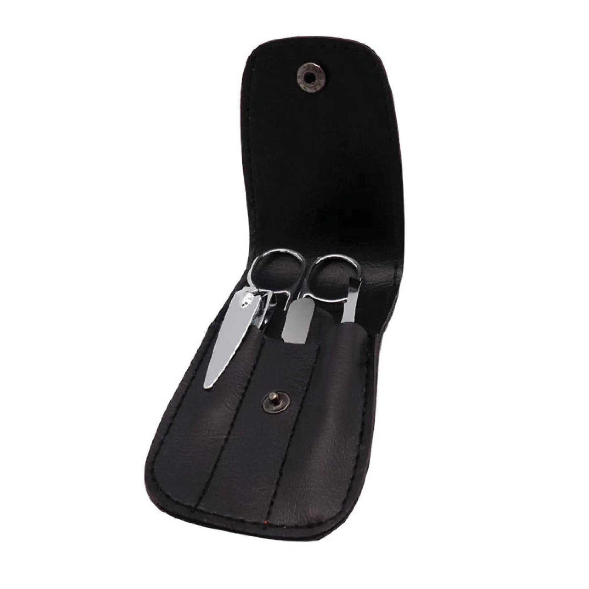 Con estuche. Incluye: alicate, tijera, lima, y pinza. Medidas: 11 x 6 cm