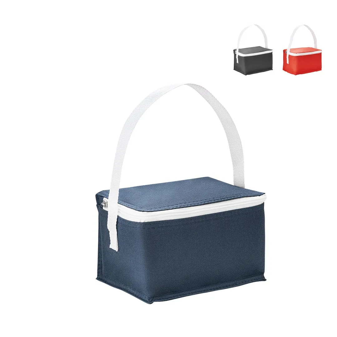 Lunchera con capacidad para llevar hasta 6 latas de 0,33 L. Fabricada en poliéster 600D. Interior de aluminio y PE Foam. Ideal uso escolar. Capacidad: 3,5L.