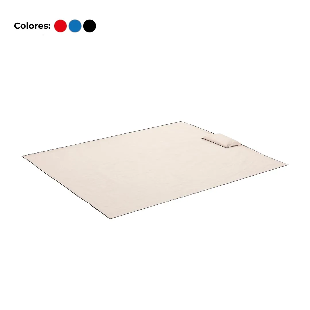 Lona de lienzo 100% algodón color crudo con bordes realizados en overlock de color negro. Contiene su propia funda cosida tipo sobre que sirve tanto de presentación como de almohada al rellenarla. Medidas: Lona 1,50 x 1,80 cm | Funda: 0,25 x 0,35 cm