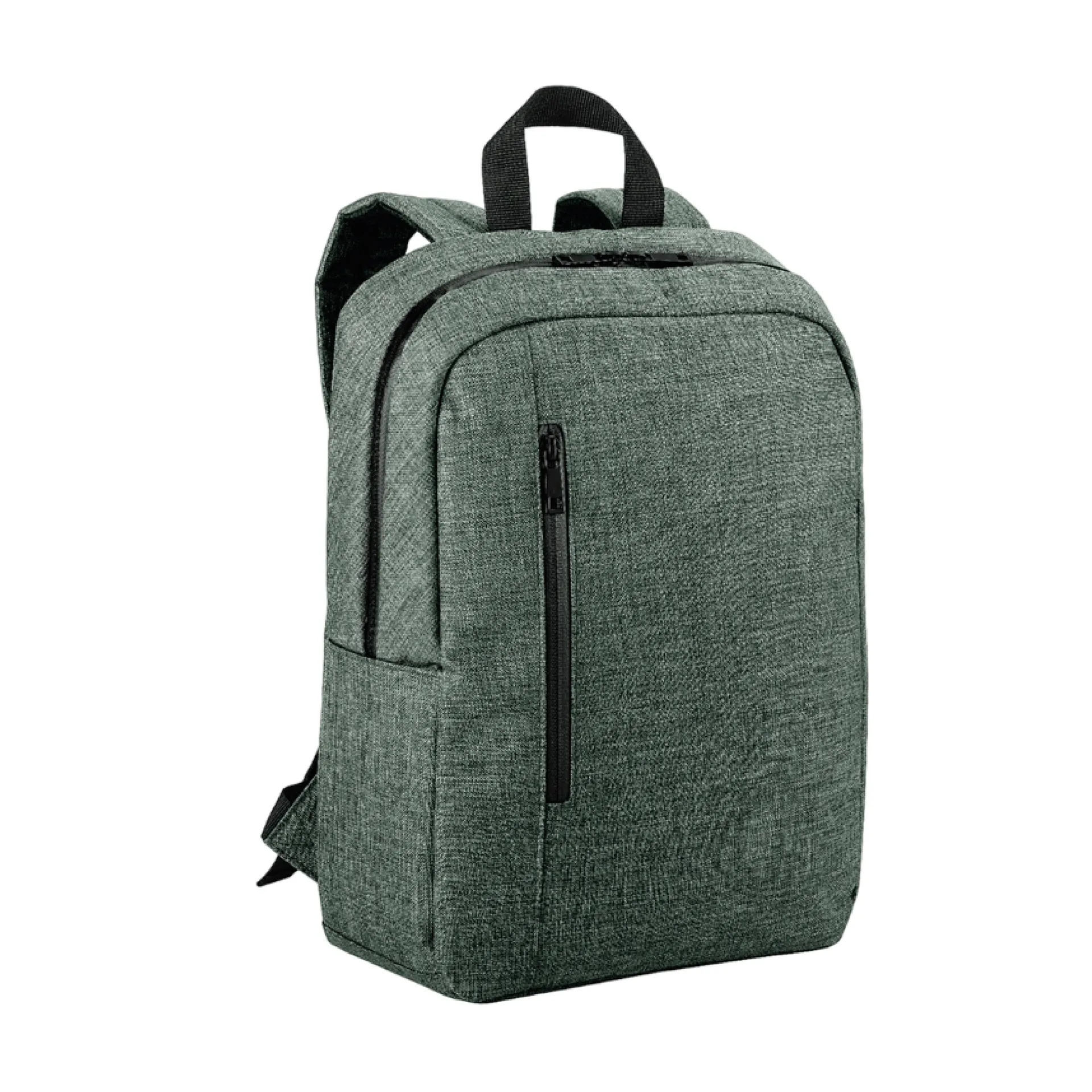 Mochila portanotebook fabricada en poliéster 600D de alta densidad. Compartimiento forrado, con 2 divisiones acolchadas para notebook de hasta 14'' y tablet 9.7''. Con bolsillo frontal y bolsillo lateral. Cuenta con espalda y tiras acolchadas.Medidas: 31 x 40 x 11 cm