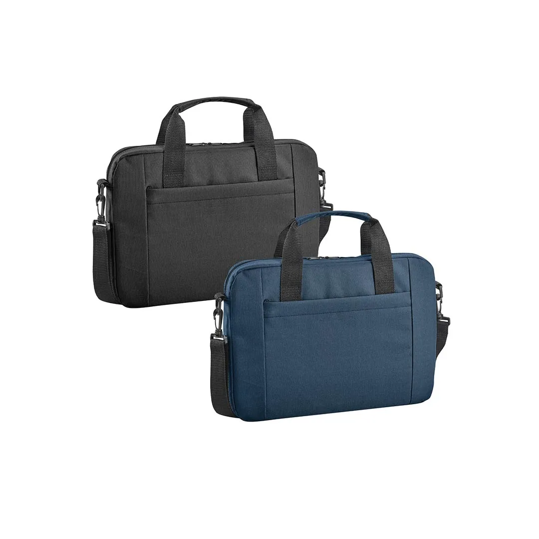 Maletín para notebook de hasta 15,6", fabricado en poliéster 600D. Cuenta con un compartimento con separación para la notebook, con interior forrado y acolchado. Incluye bolsillos interiores y un bolsillo en la parte delantera con cierre. Tiene cinta ajustable con refuerzo.