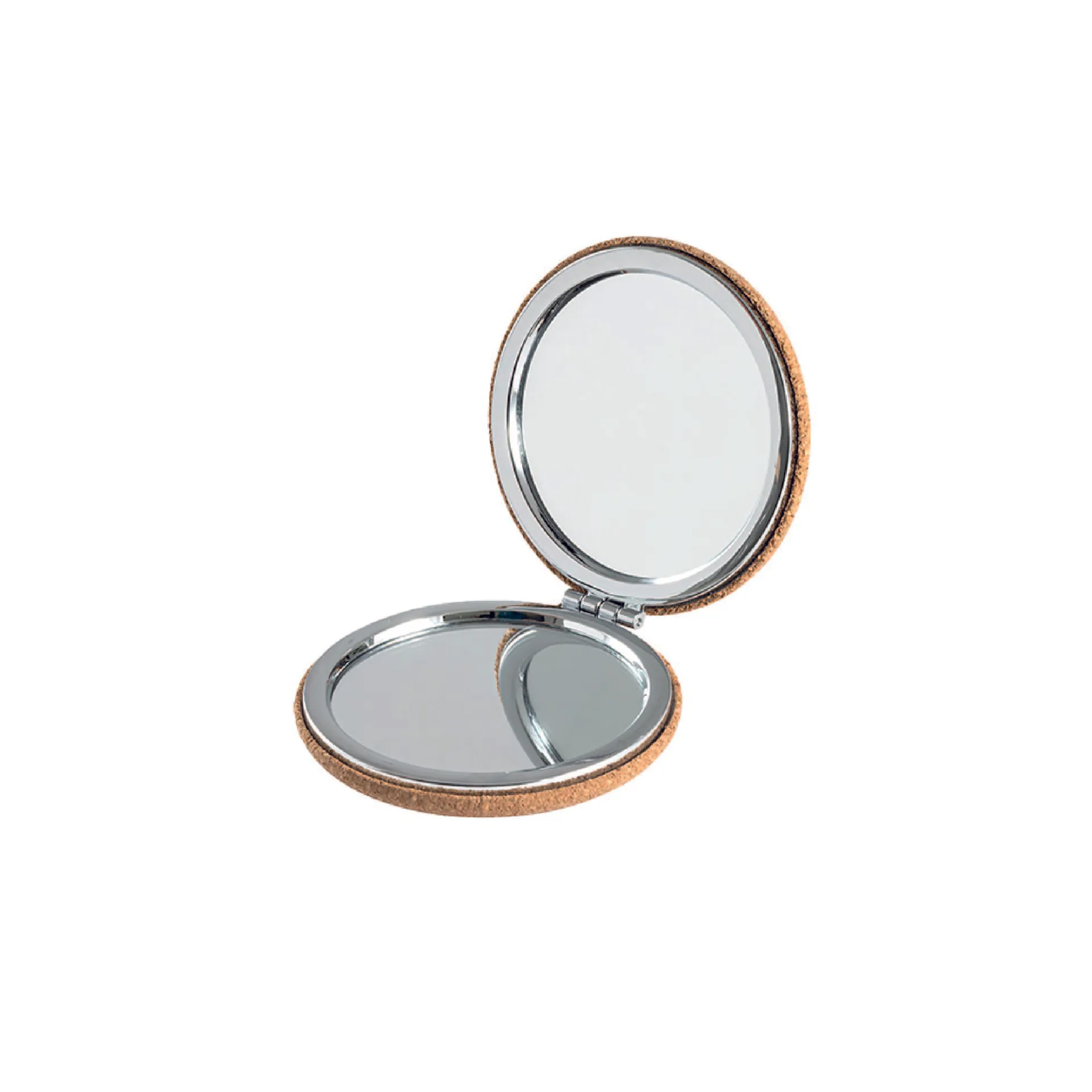 Espejo de maquillaje con doble espejo (uno de ellos con aumento). Ideal para maquillaje. Fabricado en corcho con cierre magnético. Incluye sobre de papel natural. *Como el producto está fabricado con materiales naturales, el color como el resultado de la impresión pueden tener mínimas variaciones entre productos.