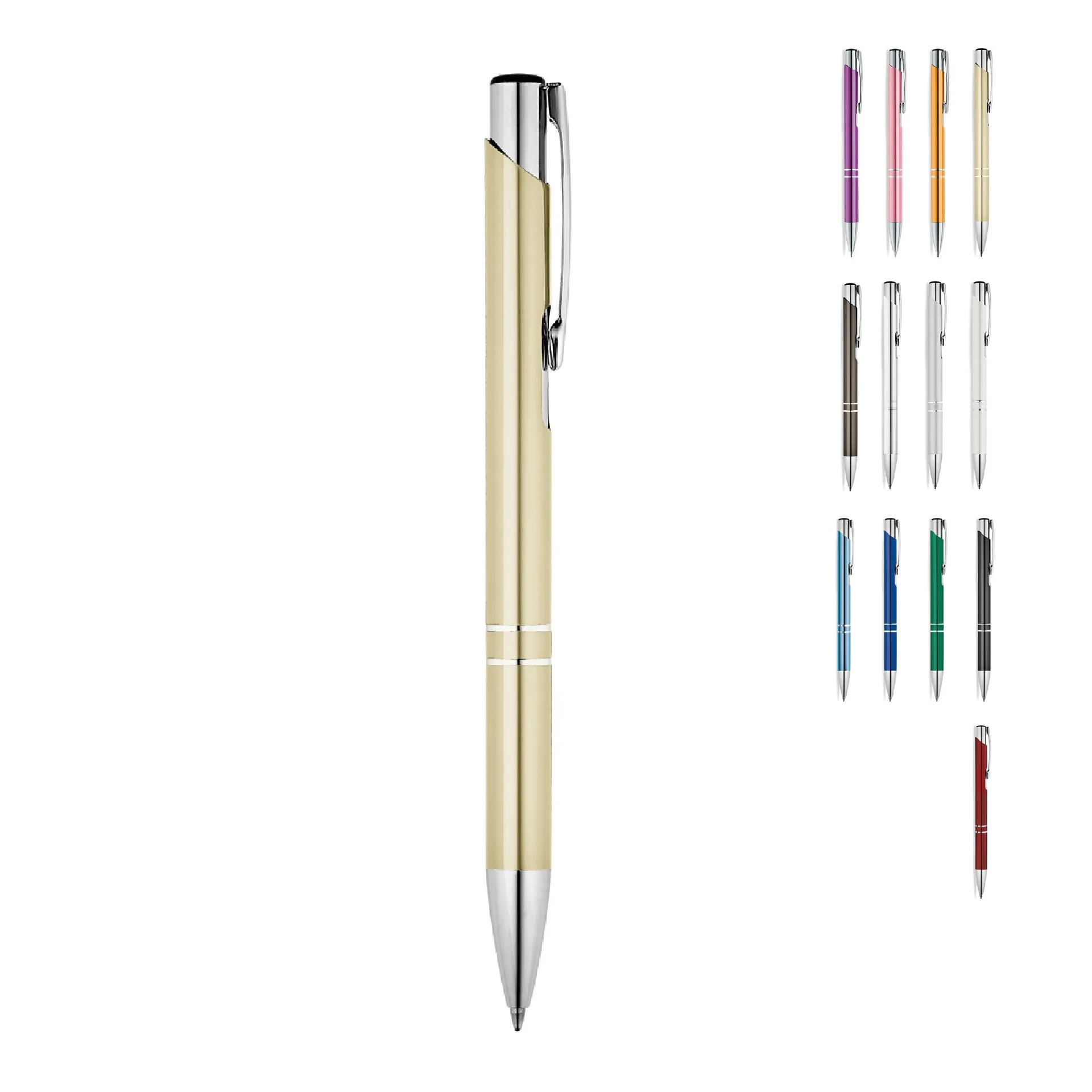 Bolígrafo fabricado en aluminio, con clip y retráctiles metalizados. Disponible en una amplia gama de colores.Tinta azul. Medidas: ø1 x 13,7 cm