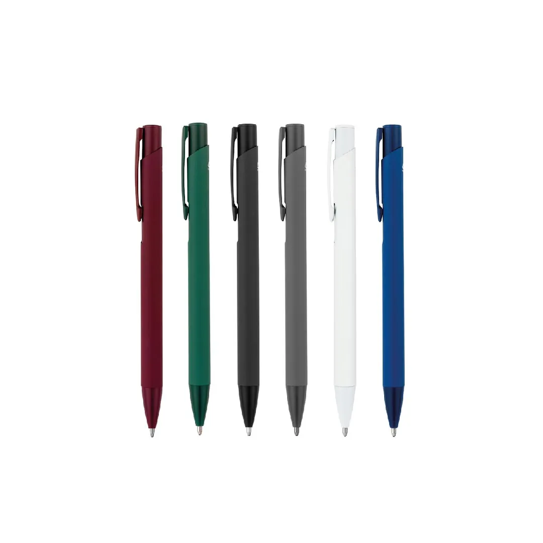 Bolígrafo retráctil de aluminio 100% reciclado (rAL), con acabado soft-touch engomado. Elegante, cómodo y sostenible. Tinta azul. Incluye ícono rAL en el dorso. Medidas: ø10 x 136 mm.